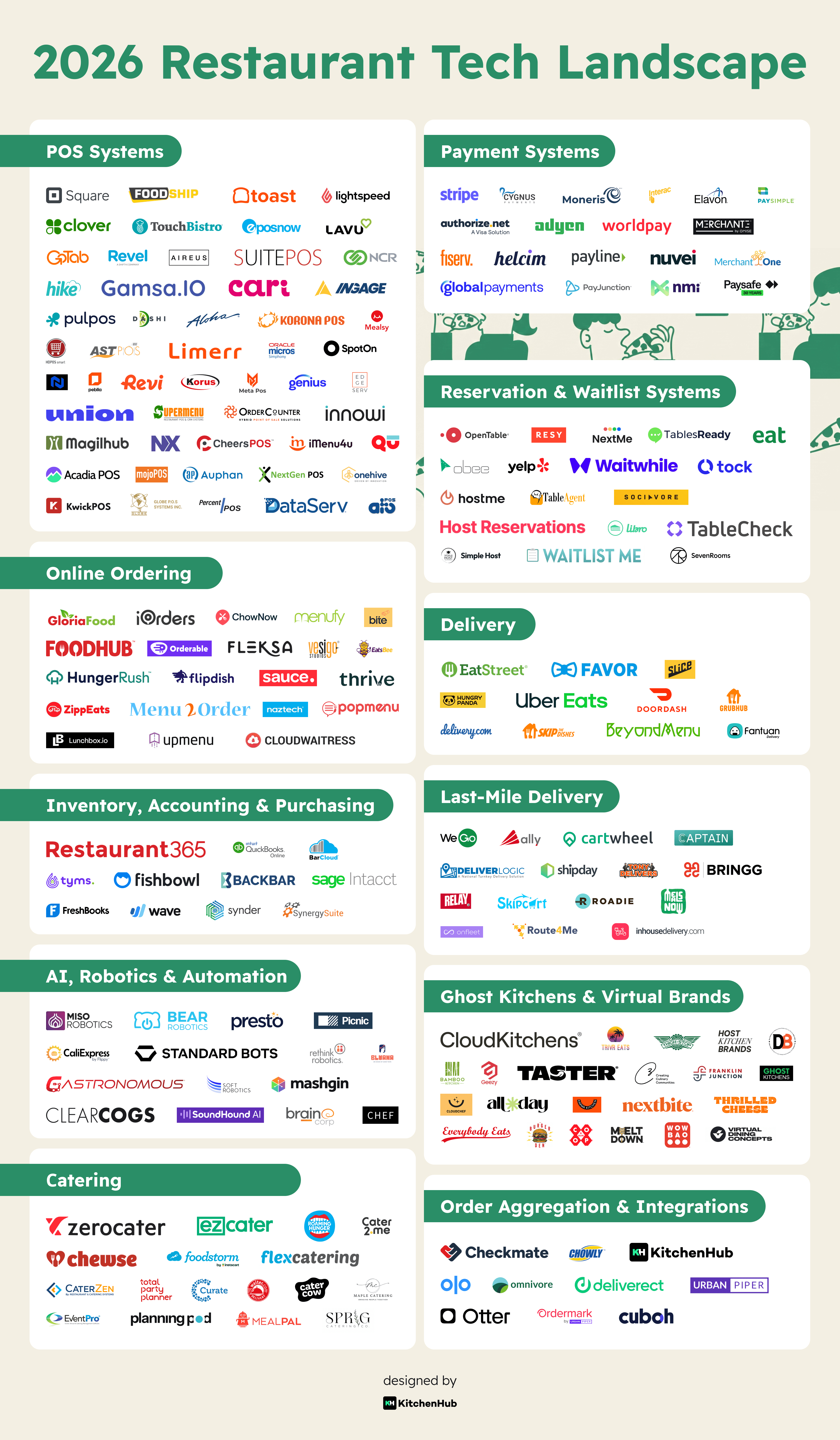 To be included, a company should have a public website, an active product, and clear relevance to the restaurant tech stack. We also require an official logo that you have the right to share.